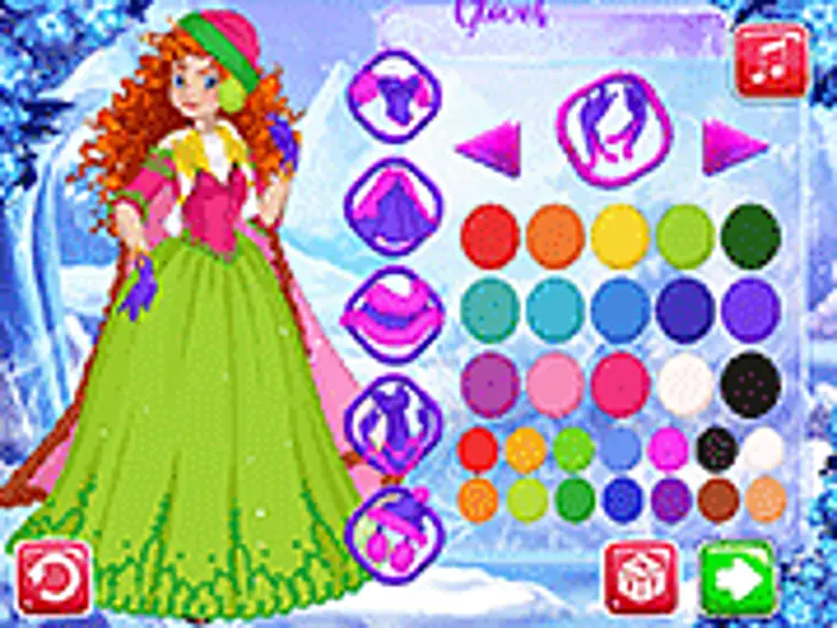 participe em um esforço para seus personagens favoritos neste novo Princess Iciness Wonderland. Campo de atenção as princesas com vestuário quentes e lindas. Você é capaz de selecionar qualquer layout e cor entre dezenas de blusas, mangas, esquetes, casacos, capas, cachecóis, luvas, protetores de orelha e combinações de chapéus. Dê engraçado!
